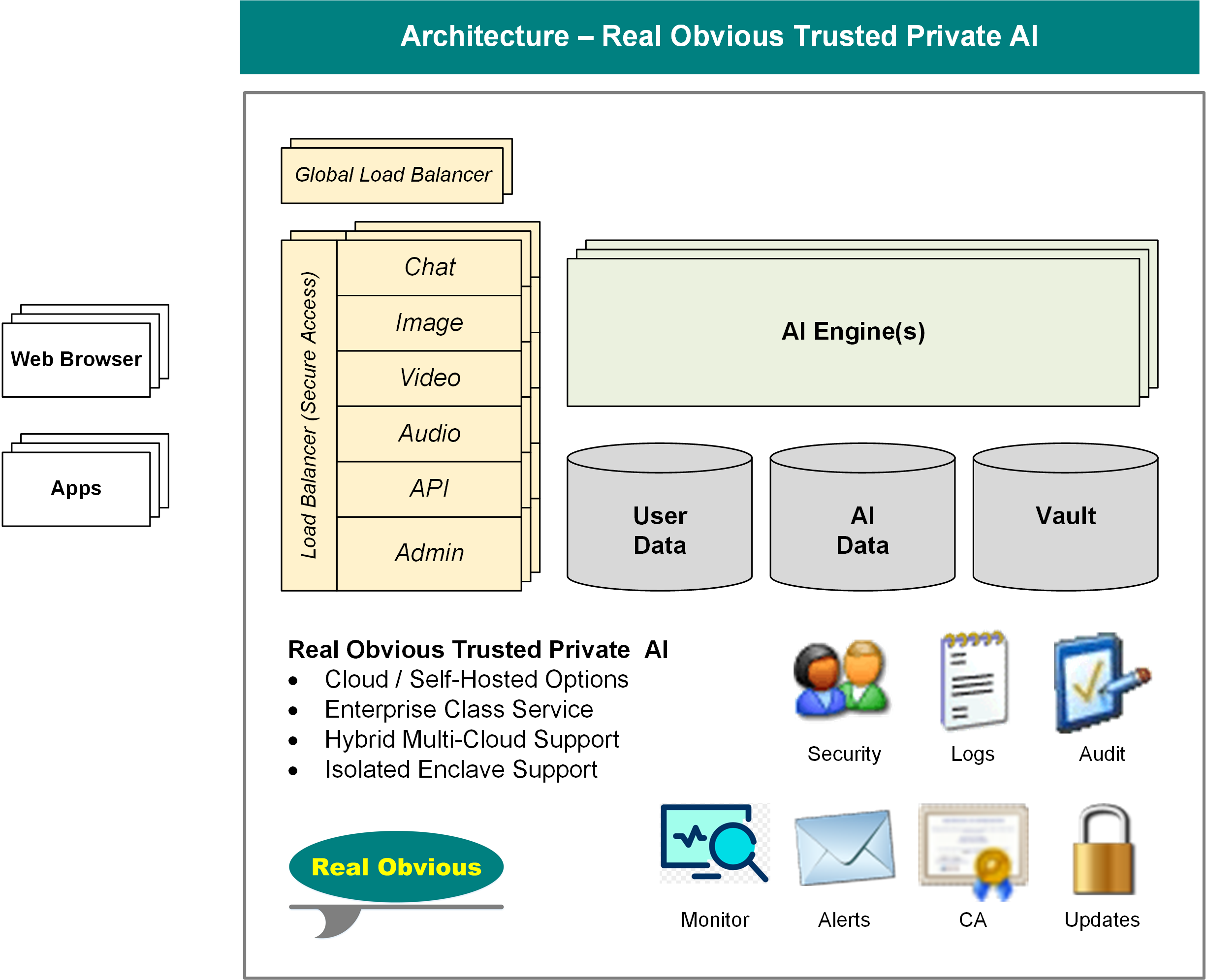 Real Obvious Trusted Private Artificial Intelligence (AI) simplifies the process to deploy, operate, and maintain AI services on systems owned / managed by your organization.